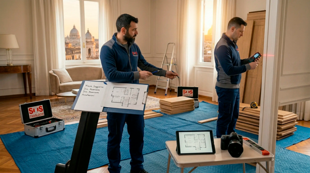 Prima del trasloco vero e proprio, la ditta effettua un sopralluogo gratuito per valutare quali mobili devono essere smontati, stimare i tempi e pianificare le risorse necessarie. In questa fase si documentano anche le condizioni iniziali degli arredi, un passaggio utile in caso di contestazioni assicurative successive.